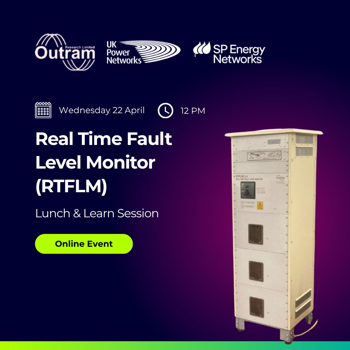 Fault level monitors – Outram fault level monitors have been installed at seven [Electricity North West] Respond [Project] sites. These monitors will validate our network model and the Fault Level Assessment Tool. Electricity North West Ltd RESPOND Project Newsletter, May 2016.