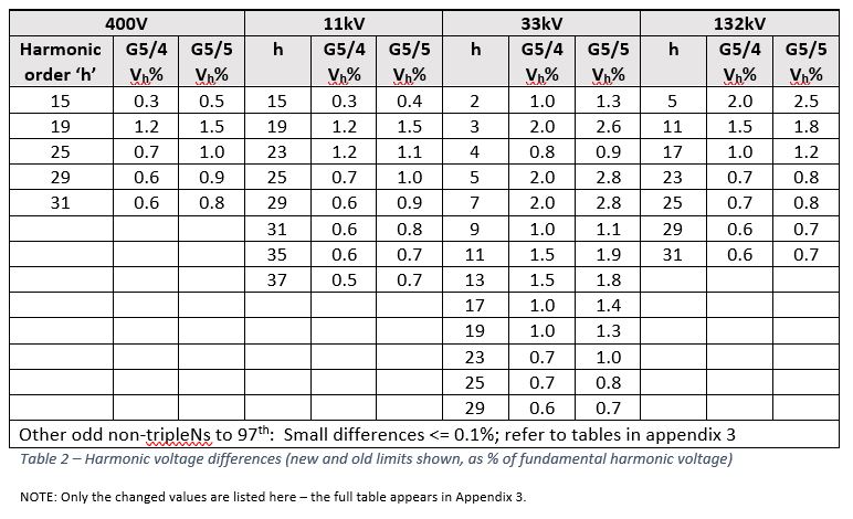 Compatibility limit tables in G5/5 have also been extended to include 50-100th harmonics, and a similar logic applies to the planning limits.